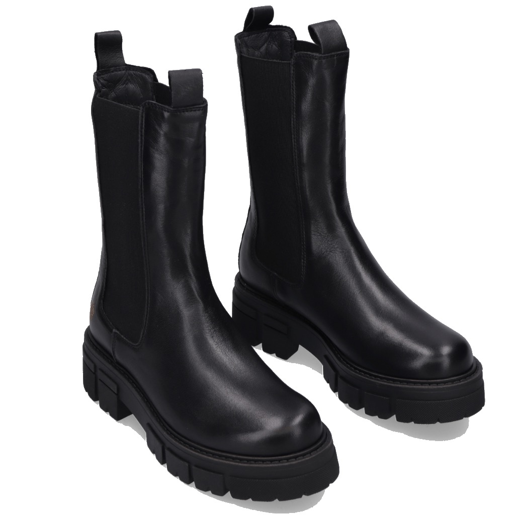 Flott og þægileg leðurstígvél með teygju sem auðvelt er að smeygja sér í. Létt fóður að innanverðu og leður í innleggi og í köntum. Þykkbotna platform sólinn er u.þ.b 5cm hár. Breiddin hentar flestum. Frábærir skór fyrir haust, vetur og íslenskt vor.