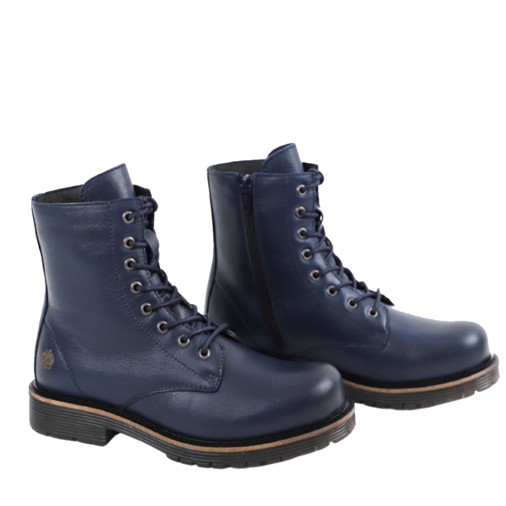 AOE Sun leðurskór reimaðir m rennilás Dökkbláir