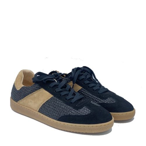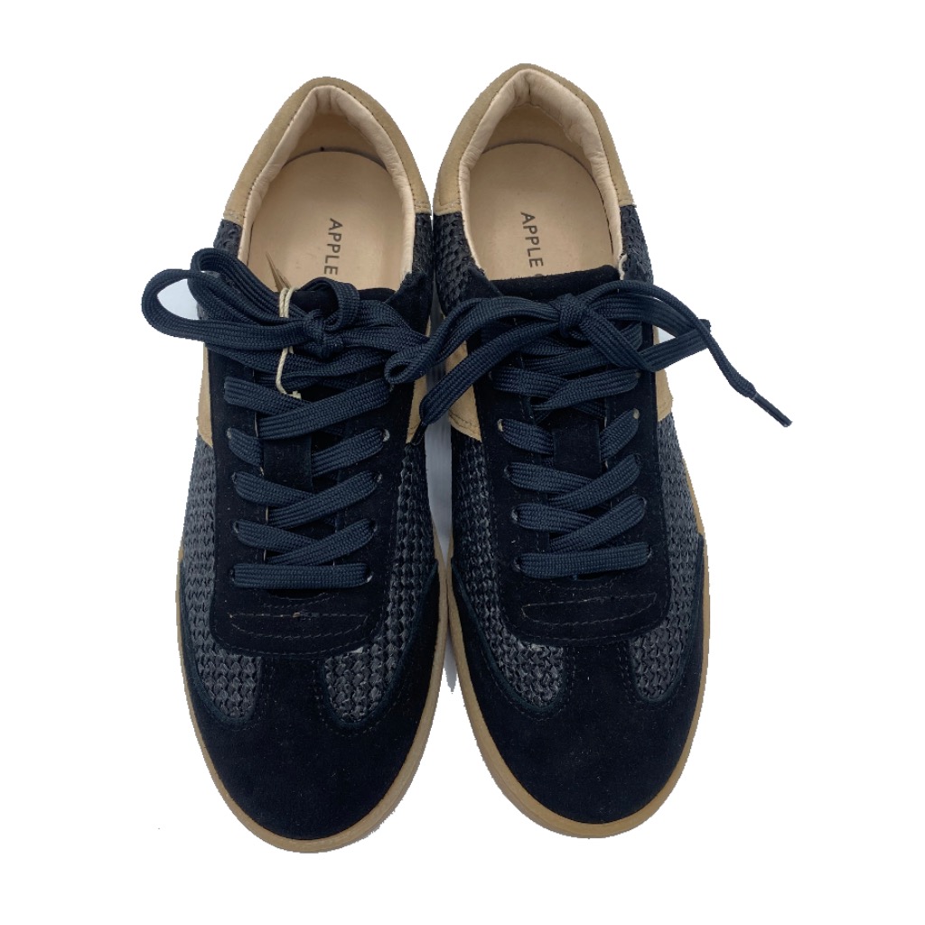 AOE Saphira leður strigaskór reimaðir Svartir m beige