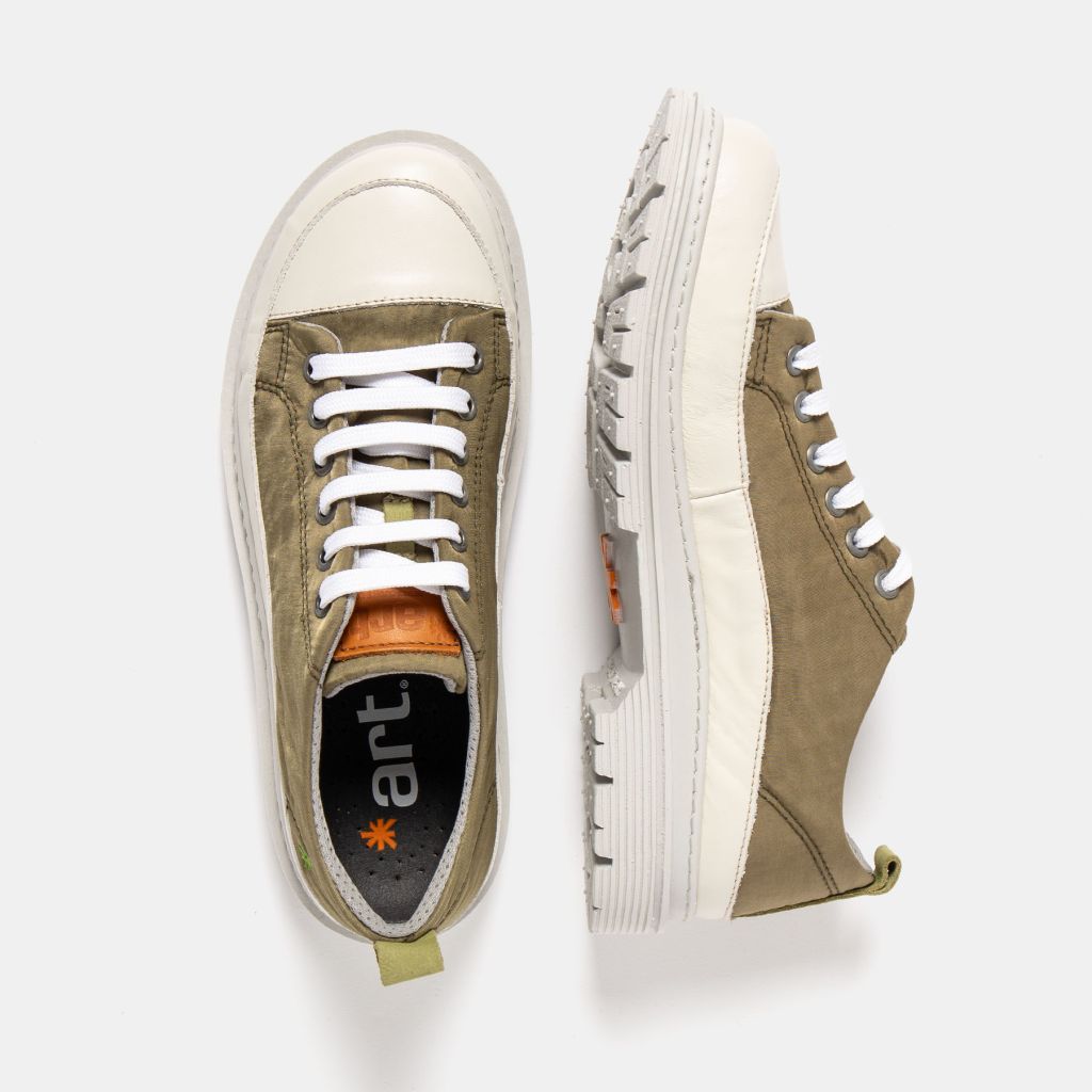 Vinsælu og þægilegu ART strigaskór úr taui og leðri (hvítur leðurkantur).  Lokast með reimum. Mjög sveigjanlegur, breiður og léttur sóli gerir þá einstaklega þægilega. Góður og grófur gúmmísóli með gripi. Hægt er að taka innleggið úr. Henta velflestum fótabreiddum (frekar breiðir).