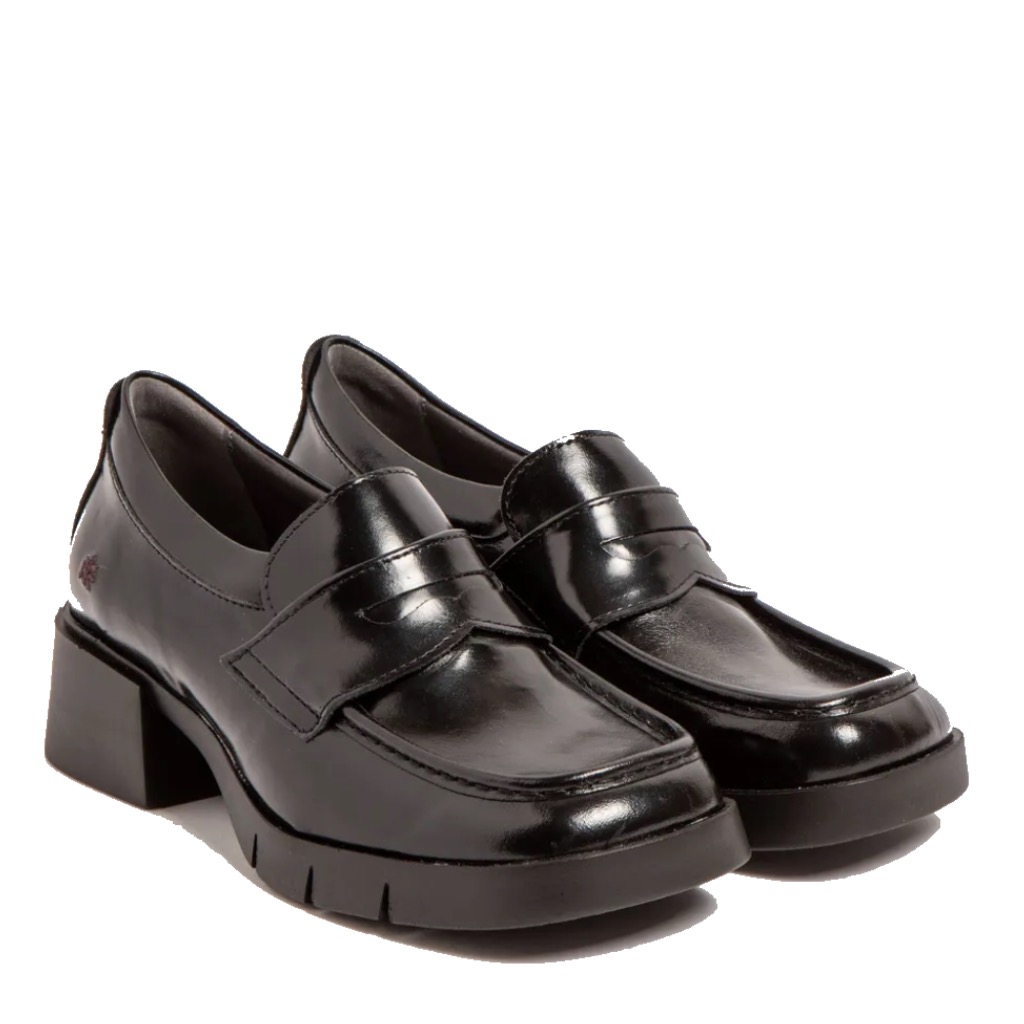 Fallegar mokkasínur úr glansandi svörtu nappaleðri í grófari útgáfu. Skórnir eru breiðir með þvertá. Hællinn er 4cm hár.  Með MOVE ME tækni og SOFTLIGHT aðferð í vinnslunni eru þessir skór með sveigjanleika undir tábergi og eru léttir.  Þægindi, stíll og látleysi einkennir Art merkið — en skórnir fara aldrei fram hjá neinum.