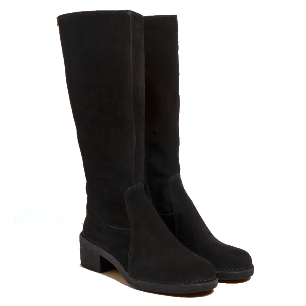 Falleg há rúskinnstígvél sem lokast með rennilás að innanverðu. Stígvélin eru góð í göngu þar sem þægindi og sveigjanleiki sólans eru einnig í forgrunni fallegrar hönnunar. Hællinn, sem er úr 100% gúmmíi eins og sólinn, er 5.5cm hár. Hægt er að taka leðurinnleggið úr stígvélunum. Stígvélin eru klædd með mjúku fóðri að innan.