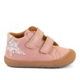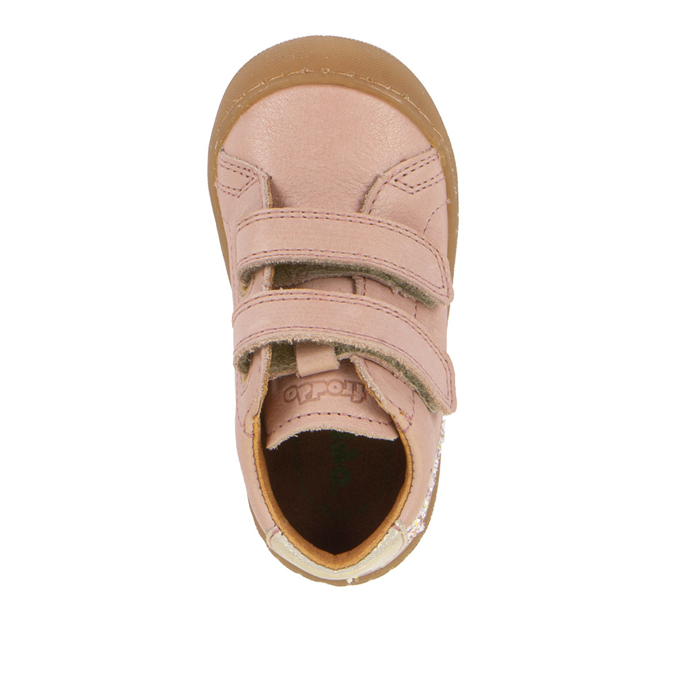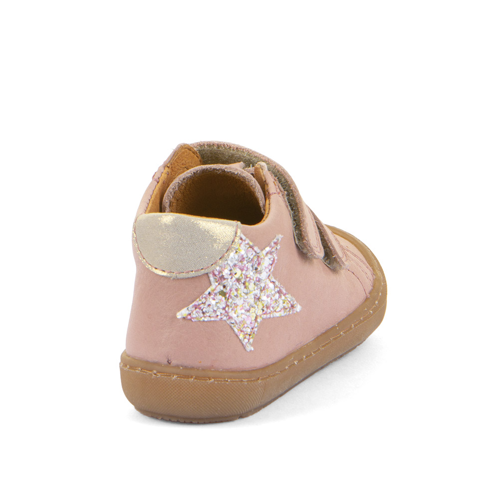 Ollie Star skórnir eru þægilegir og flottir með glimmer stjörnu að aftan. Hanskamjúkir leðurskór sem lokast með 2 frönskum lásum til að auvelda að fara í. Leðurklæddir að innanverðu og í innleggi sem hægt er að taka úr. Hæfilegur stuðningur við hælinn sem gerir þá ekki of stífa en veitir létt aðhald í fyrstu skrefum barnsins. Auka leðurbólstrun yfir ökklann sem gefur mýkt og léttan stuðning. Mjög sveigjanlegur og léttur gúmmísóli sem gerir þá mjög þægilega í leik og göngutúrum. Þessir henta flestum breiddum fóta.