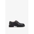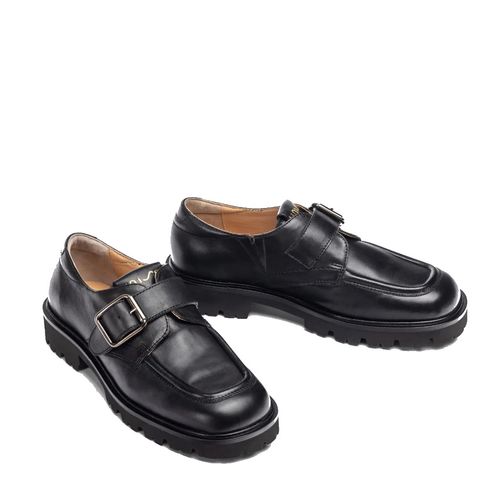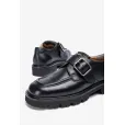 Flottir leðurskór með þvertá og metal spennu yfir rist sem gefur þeim flottan karakter. Leður að innan og í innleggi. Grófur gúmmísóli. Skórnir henta við alls kyns fatnað, sem vinnuskór eða spari.