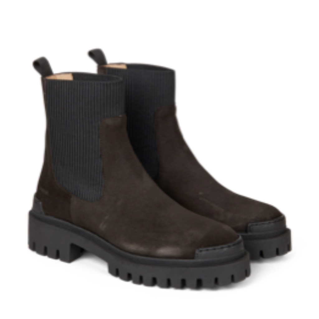 • Flottir þykkbotna platform ökklastígvél úr rúskinni, leðri að innan og Chelsea teygju að ofan. Táin er rúnnuð. Þessir eru orðnir að klassík hjá Angulus enda vel hannaðir og þægilegir. Breiddin er miðlungs, en ef þú ert á milli stærða mælum við með að taka stærri stærðina.