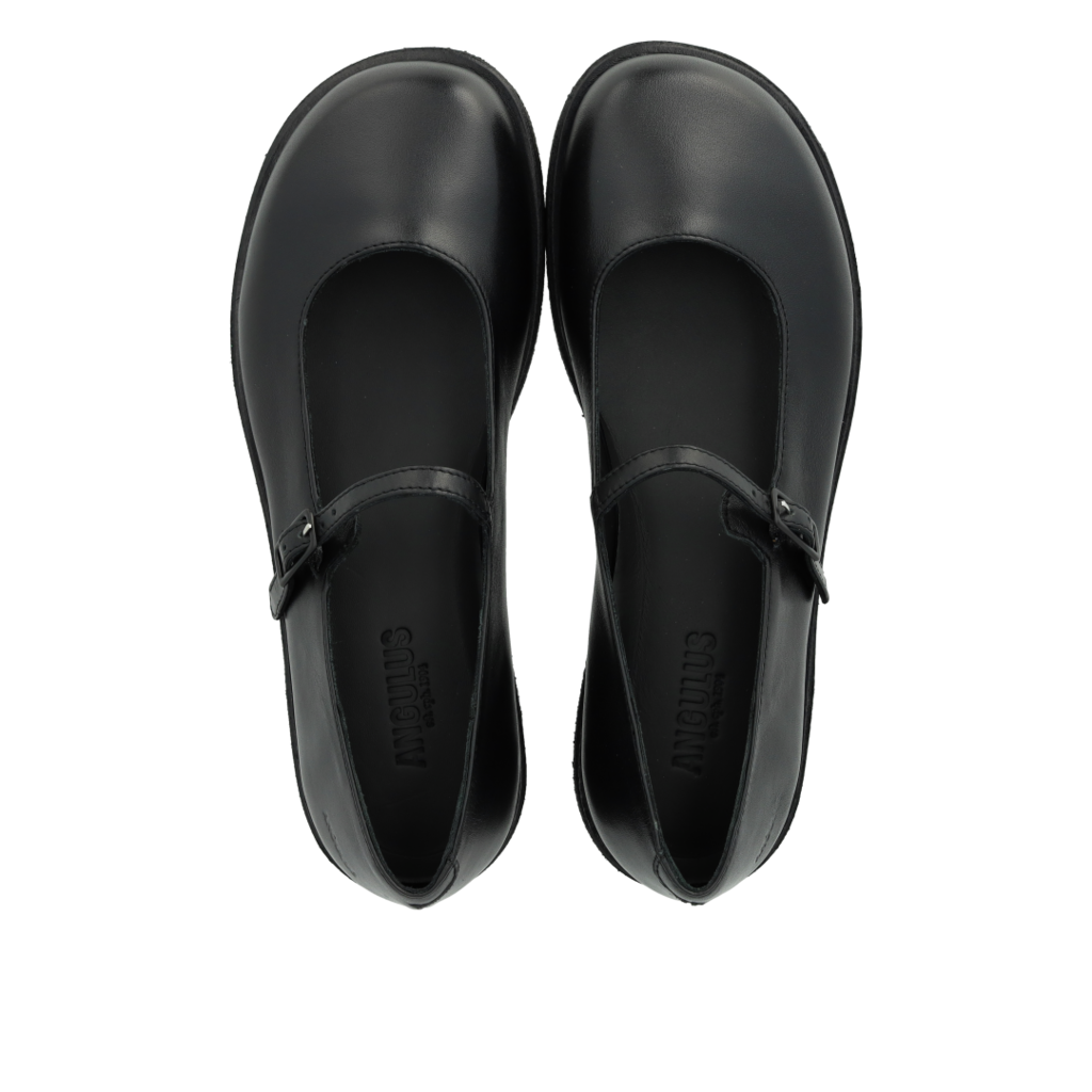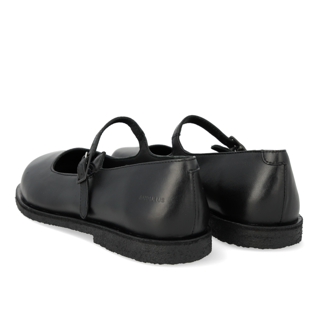 Angulus lágbotna leðurskór breiðir m ristarbandi hrágúmmísóli Svartir