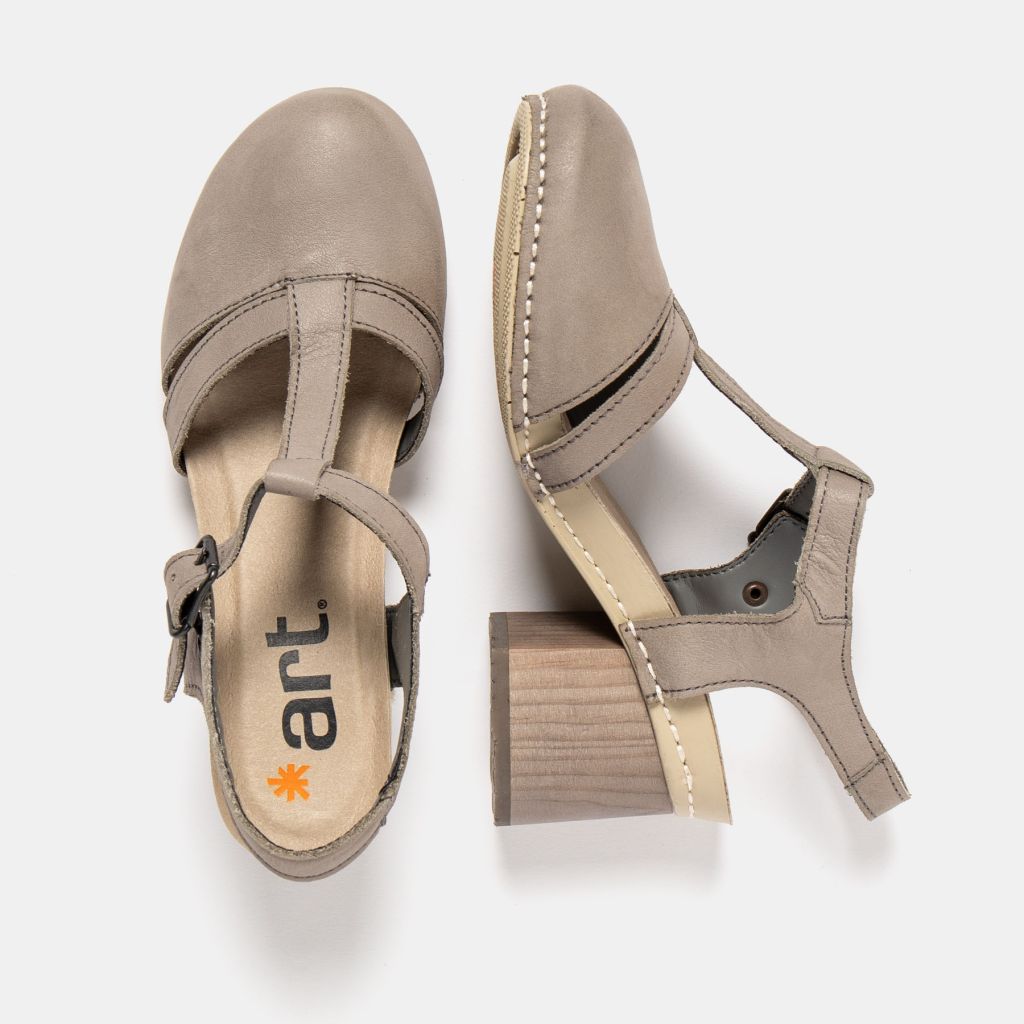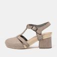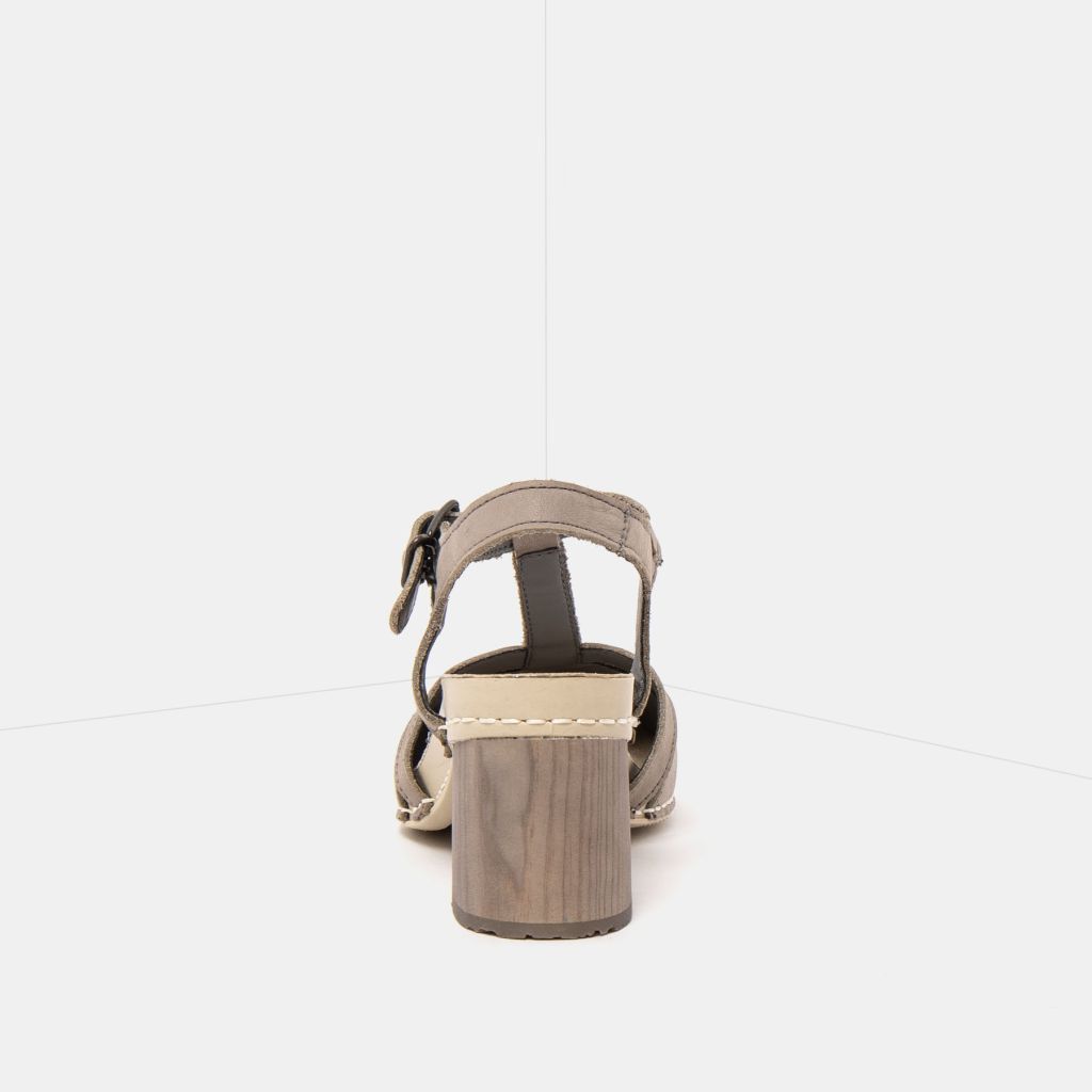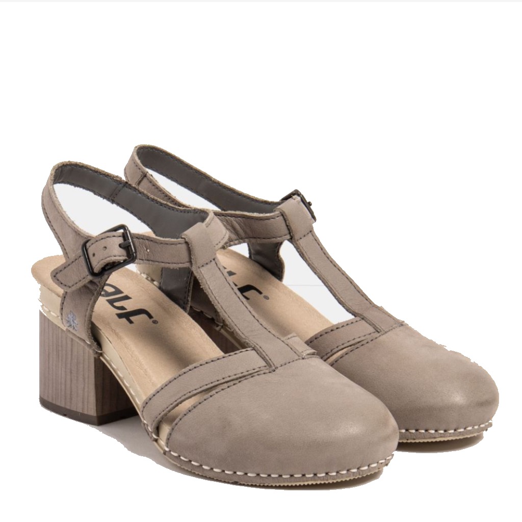 Fallegir leðursandalar (waxed leather) með kubbahæl (6,5cm) úr tré. Gúmmí neðst á sólanum. Lokast með spennu. Microfiber að innanverðu. Mjög þægilegir og klæðilegir hælasandalar sem henta flestum fótum þar sem breiddin er góð.