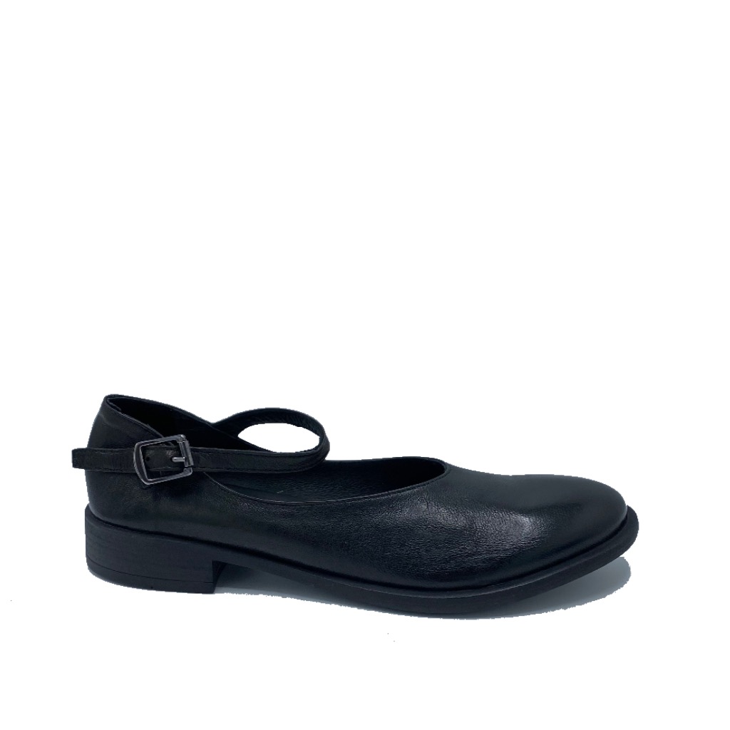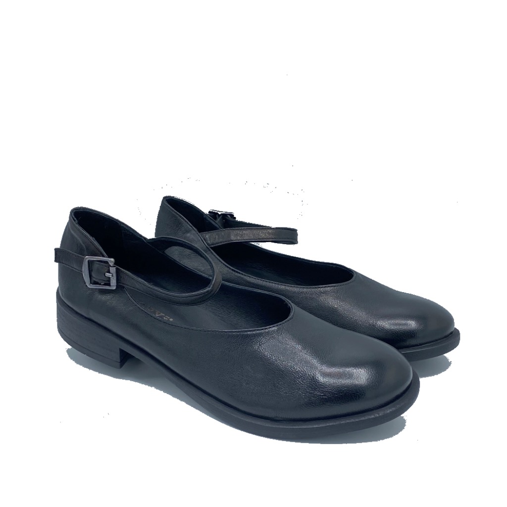 Dásamlegir ítalskir handgerðir leðurskór með bandi yfir rist. Leður að innan og í innleggi. Sólinn er úr gúmmíi sem gerir hann staman undir. Breiddin hentar grönnum til miðlungsbreiðum fótum. Fallegir skór hversdags sem spari, við buxur, pils og kjóla.