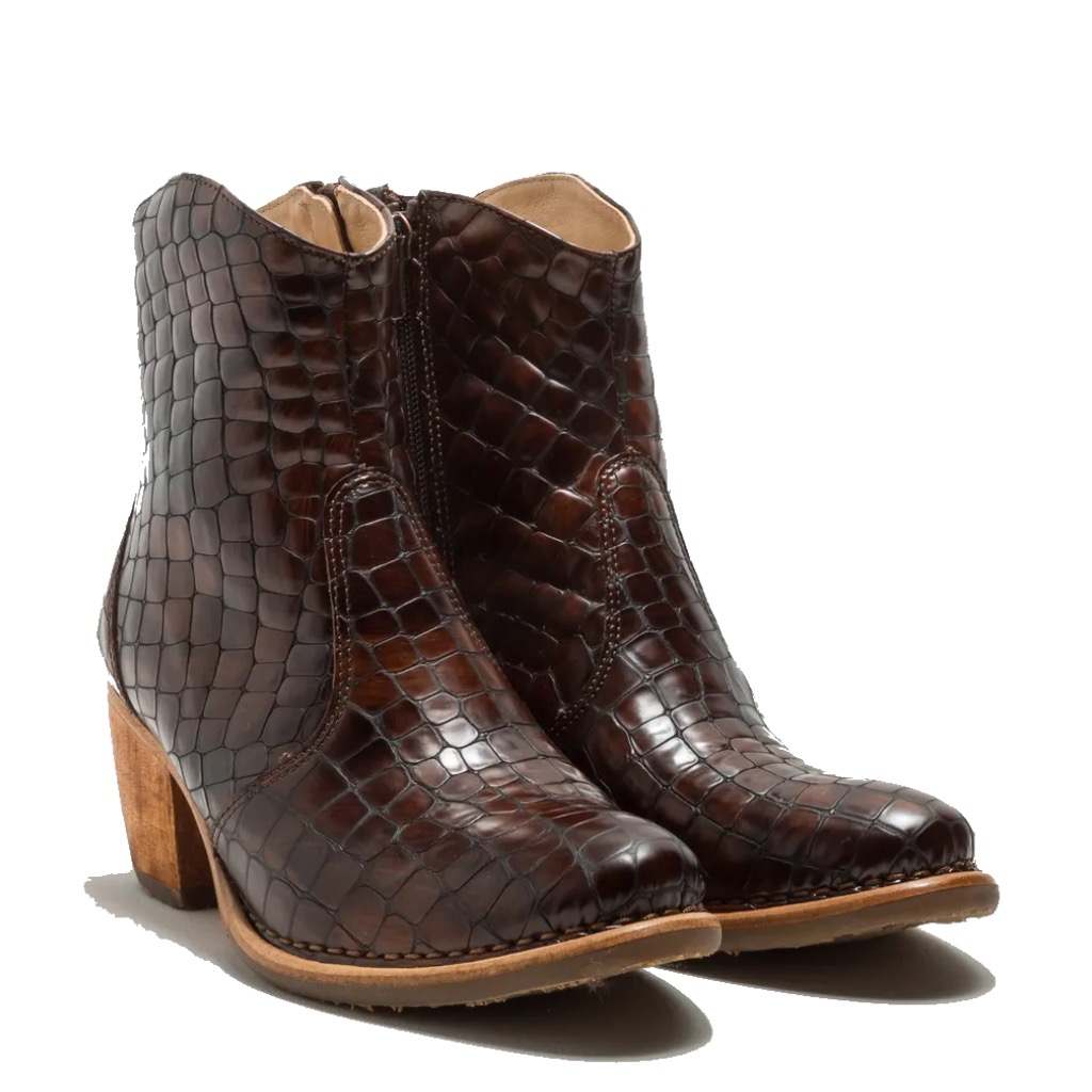 Neosens ökklastígvél úr leðri tréhæll Brúnir Croco