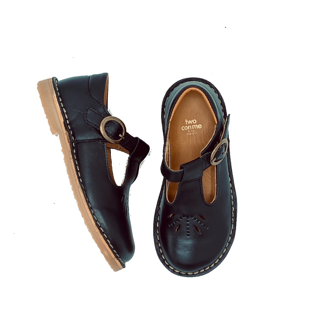 Dásamlegir leðurskór með klassísku t-banda sniði. Mjúkt og gott leður að innan og í innleggi sem hægt er að taka úr. Lokast með spennu yfir rist. Sólinn er úr stömu gúmmíi og breiddin hentar flestum. Falleg, góð og klassísk hönnun frá ítalska merkinu PéPé.